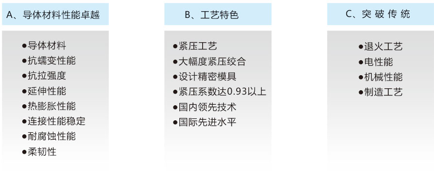 先進(jìn)的緊壓技術(shù),其導(dǎo)體的填充系數(shù)能達(dá)到93%以上。