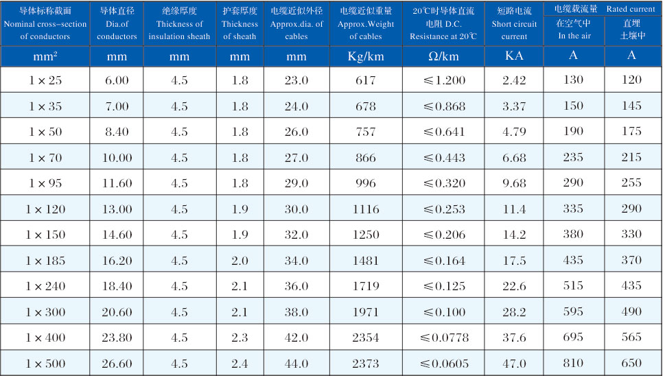 YJLHV(TC90) 8.7/10kV、8.7/15kV 單芯交聯(lián)聚乙烯絕緣聚氯乙烯護(hù)套鋁合金電力電纜
