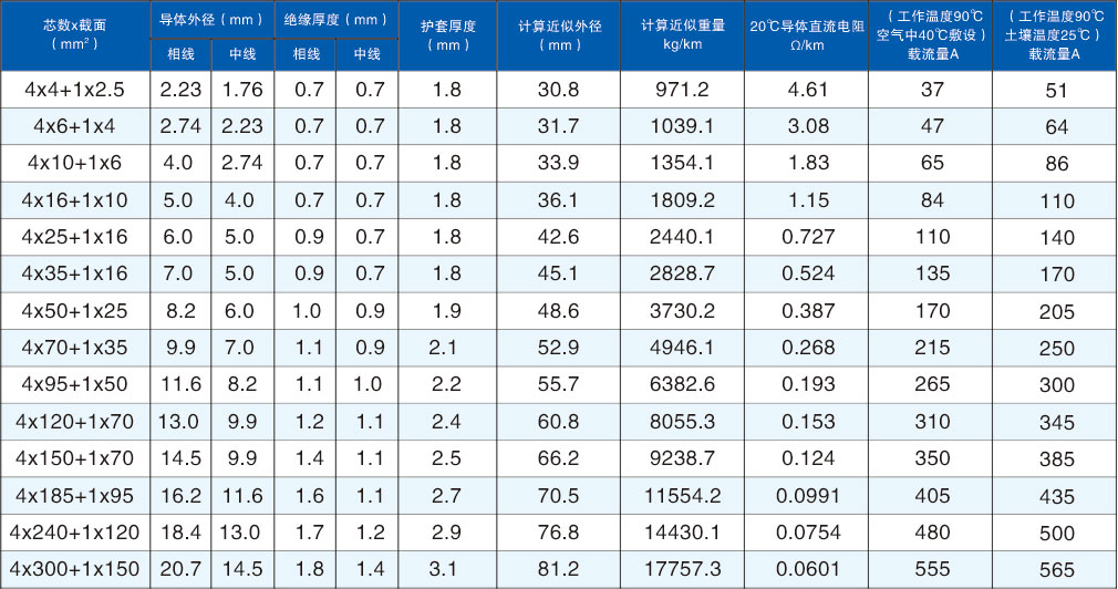 型號(hào):NGA(BTLY) 規(guī)格:3x4+2x2.5-3x400+2x185mm2 額定電壓:0.6/1KV